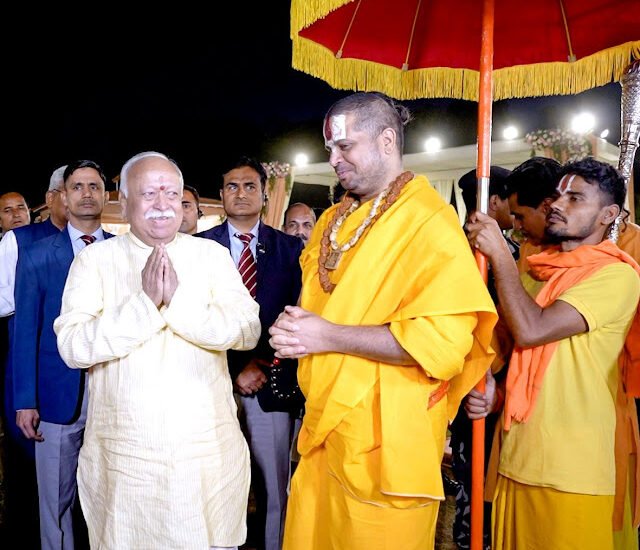 एक निजी कार्यक्रम के दौरान राष्ट्रीय स्वयंसेवक संघ के सरसंघचालक Mohan Bhagwat ने प्रख्यात आध्यात्मिक गुरु Jagadguru Swami Satishacharya Ji Maharaj से मुलाकात कर उनके चरण स्पर्श कर आशीर्वाद लिया। भारतीय परंपरा में गुरु के चरण स्पर्श करना सम्मान और श्रद्धा का प्रतीक माना जाता है। यह मुलाकात उस समय चर्चा का विषय बन गई