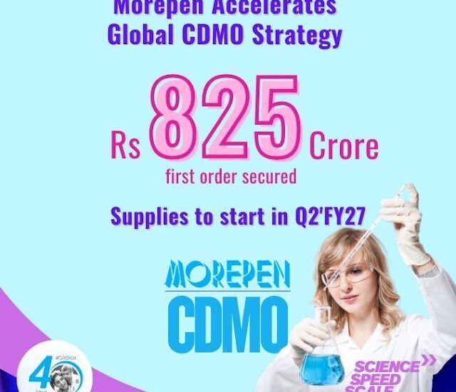 गुरुग्राम : मोरेपेन लेबोरेटरीज लिमिटेड (NSE: MOREPENLAB; BSE: 500288) ने एक अग्रणी वैश्विक फार्मा कंपनी से लगभग ₹825 करोड़ (USD 91 मिलियन) का बहुवर्षीय कॉन्ट्रैक्ट डेवलपमेंट एंड मैन्युफैक्चरिंग ऑर्गनाइजेशन (CDMO) ऑर्डर हासिल किया है। इस ऑर्डर के तहत सप्लाई अगले 4–5 महीनों के भीतर शुरू होने की उम्मीद है, और इसका कार्यान्वयन सामान्य ऑपरेशनल एवं रेगुलेटरी प्रक्रियाओं